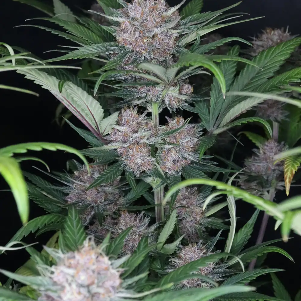 Bu ödüllü genetik güçlü ve dayanıklı olsa da, yetiştirmesi orta seviyede zorlayıcı olabilir. Yani biraz tecrübe sahibiysen, bu senin için biçilmiş kaftan. Serin havalarda coşuyor, bu da onu değişken iklimlerde yetiştirme yapmak isteyenler için akıllı bir seçim haline getiriyor. Bitkiler kompakt kalıyor; bu da küçük iç mekanlar ve Sea of Green (SOG) teknikleri için harika oldukları anlamına geliyor. Yaprak budaması hava akışını iyileştirecek ve alt dallara daha fazla ışık gitmesini sağlayacak. Doğru bakımla verimi katlayacaksın. Çiçeklenme döneminin sonlarına doğru gece sıcaklıklarını düşürmek, o derin mor tonlarını ortaya çıkarmana yardımcı olacak. Ortalama 56 günlük kısa bir çiçeklenme döngüsüyle, metrekare başına yaklaşık 300 gram hasat bekleyebilirsin. Bu genetik tüm kuralları yeniden yazıyor!